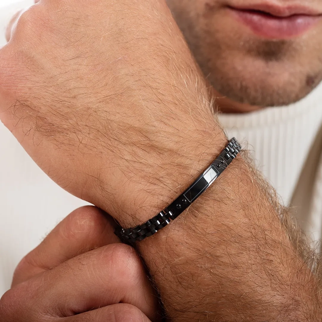 Χειροπέδα ανδρική ατσάλι σε ασημί με μαύρο