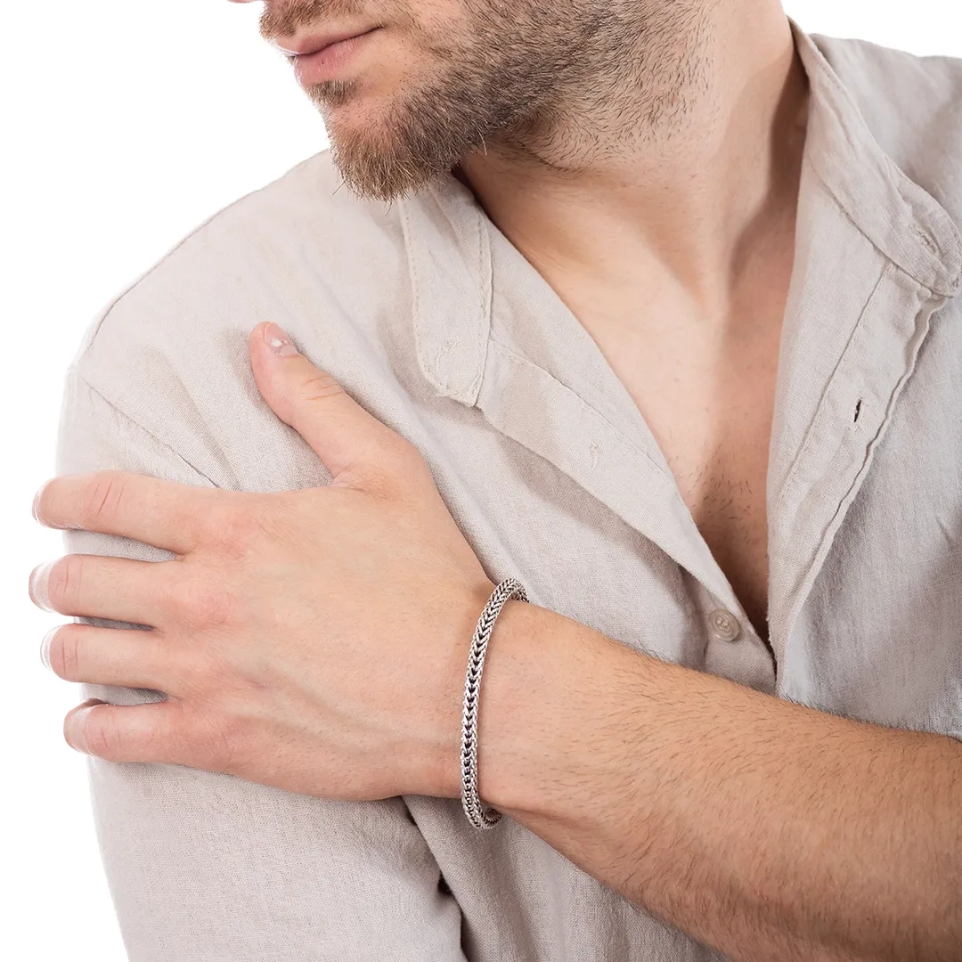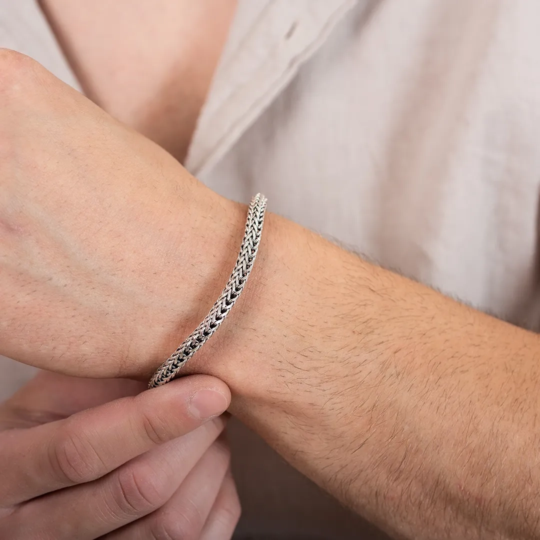 Oxzen ανδρικό βραχιόλι από ασήμι, χειροποίητο με κούμπωμα ασφαλείας