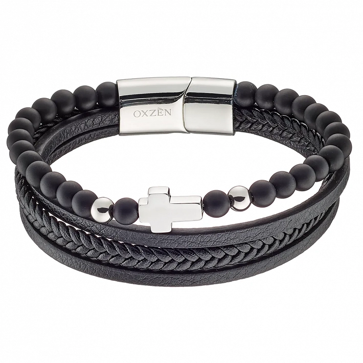 Oxzen ανδρικό βραχιόλι ατσάλινο με δέρμα, τέσσερις σειρές