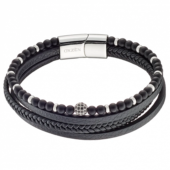Βραχιόλι ατσάλινο με δέρμα μαύρο και κούμπωμα μαγνήτη