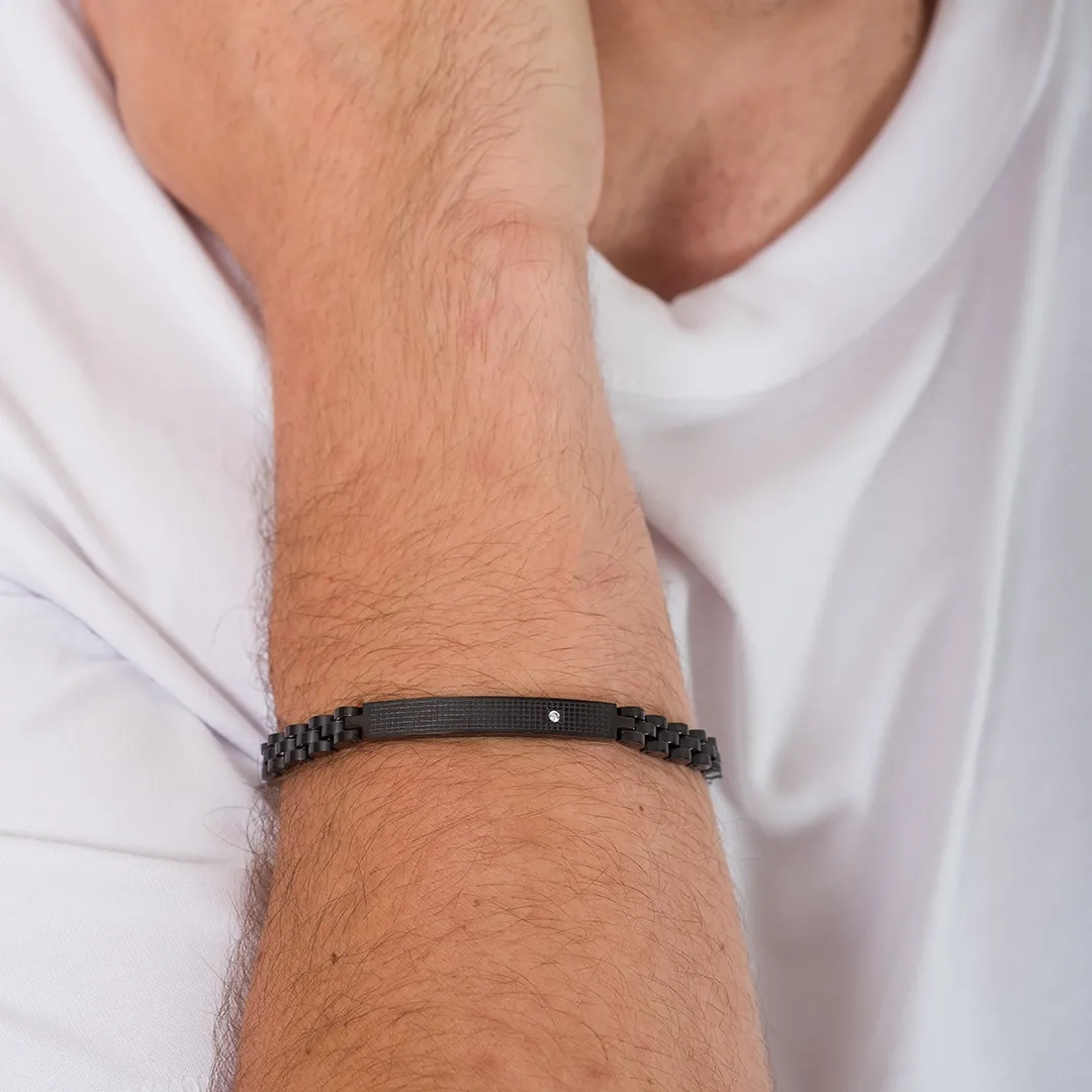Χειροπέδα ανδρική ατσάλι σε ασημί με μαύρο