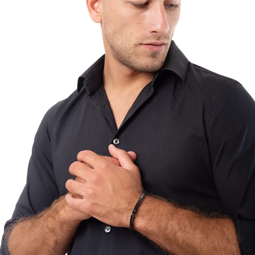 Χειροπέδα ανδρική ατσάλι σε ασημί με μαύρο