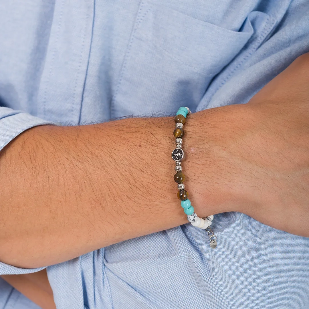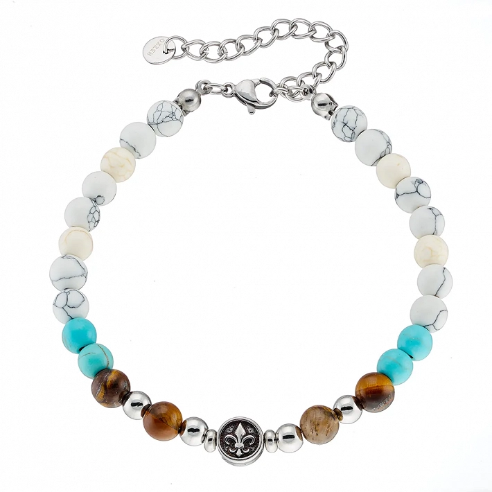 Oxzen ανδρικό βραχιόλι με ορυκτές πέτρες και ατσάλινα στοιχεία