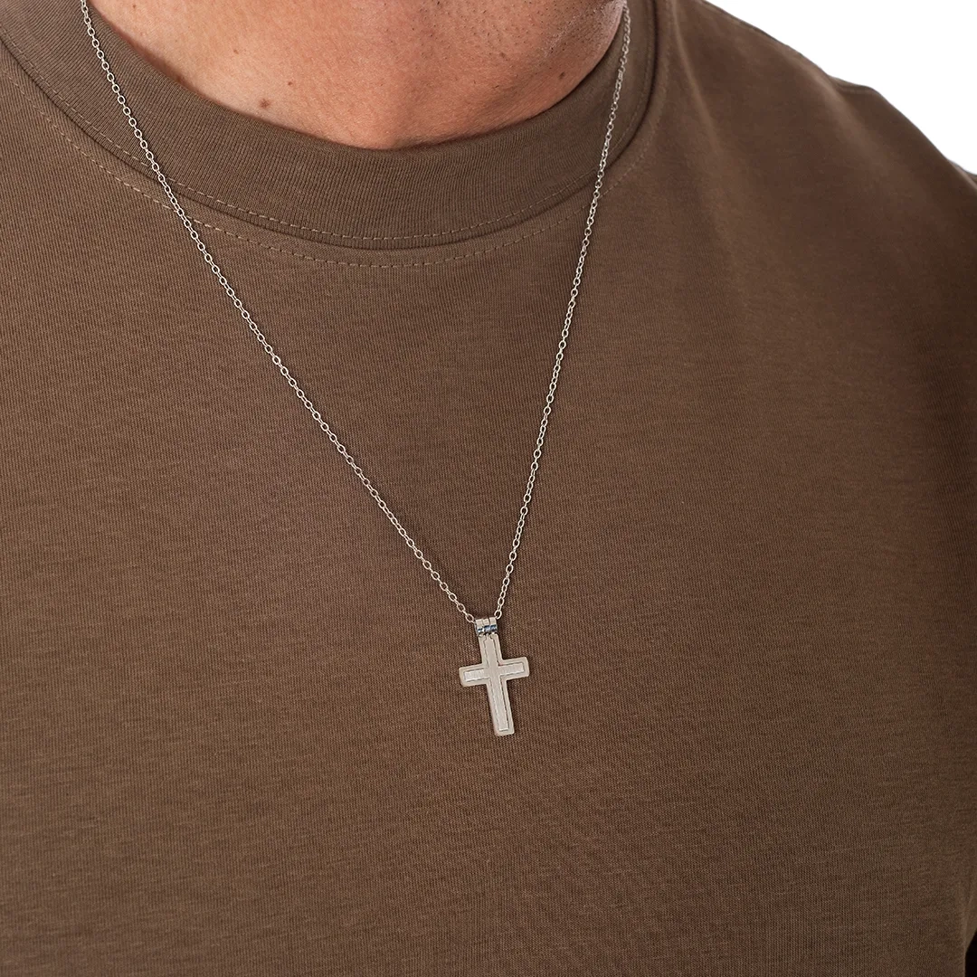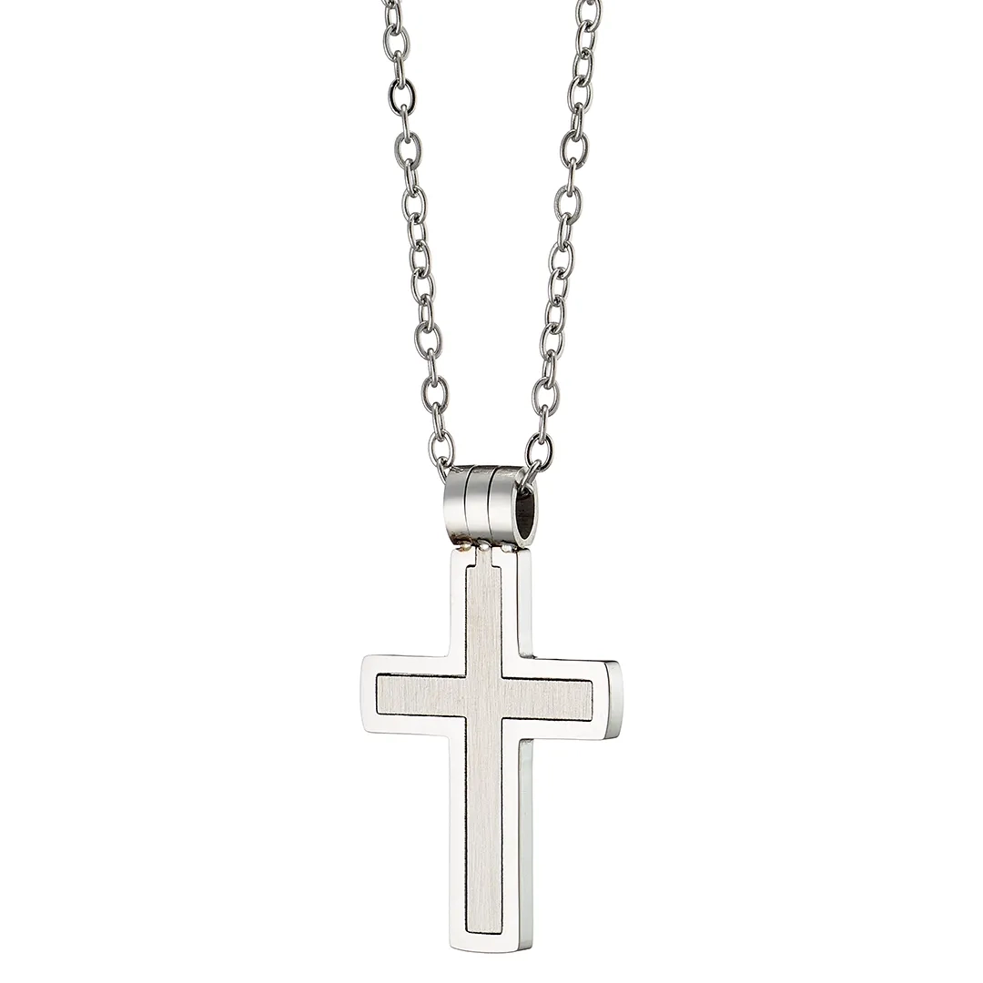 Κολιέ σταυρός αντρικός ατσάλι σε ασημί με μαύρο