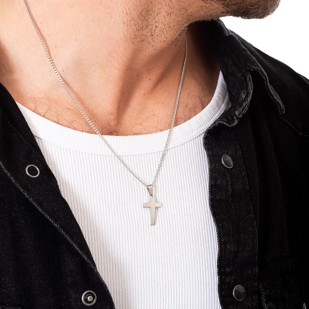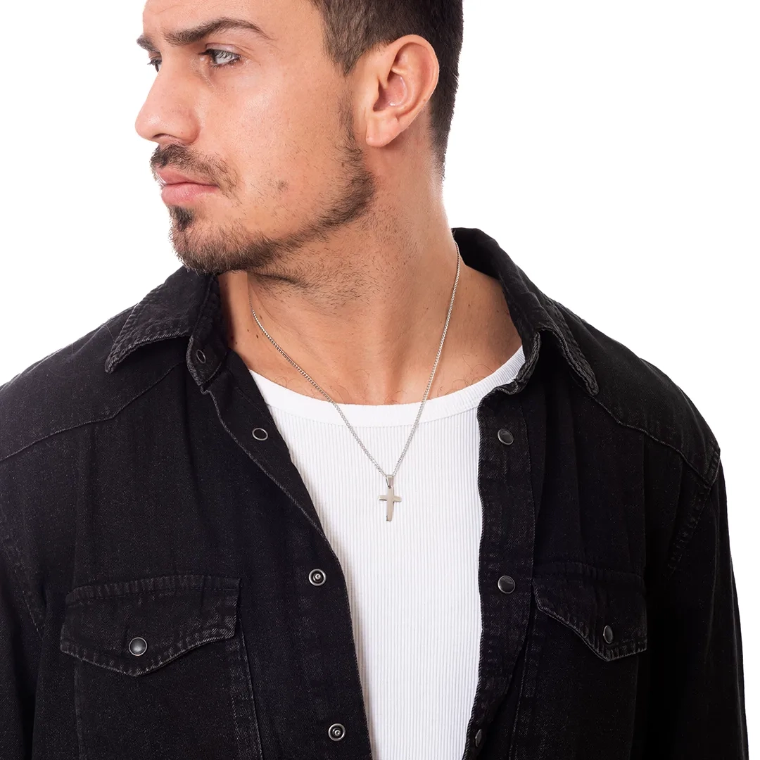 Κολιέ σταυρός με αλυσίδα αντρικός ατσάλι