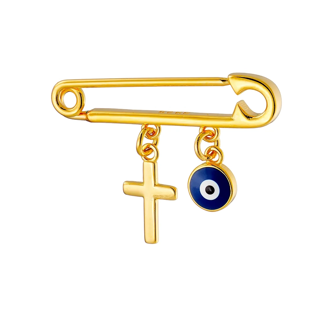 Oxzen ασημένια παιδική παραμάνα επιπλατινωμένη με ματάκι και σταυρό