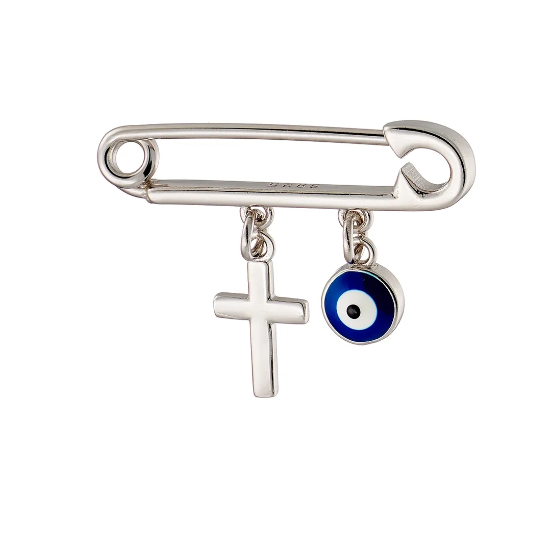 Oxzen ασημένια παιδική παραμάνα επιπλατινωμένη με ματάκι και σταυρό