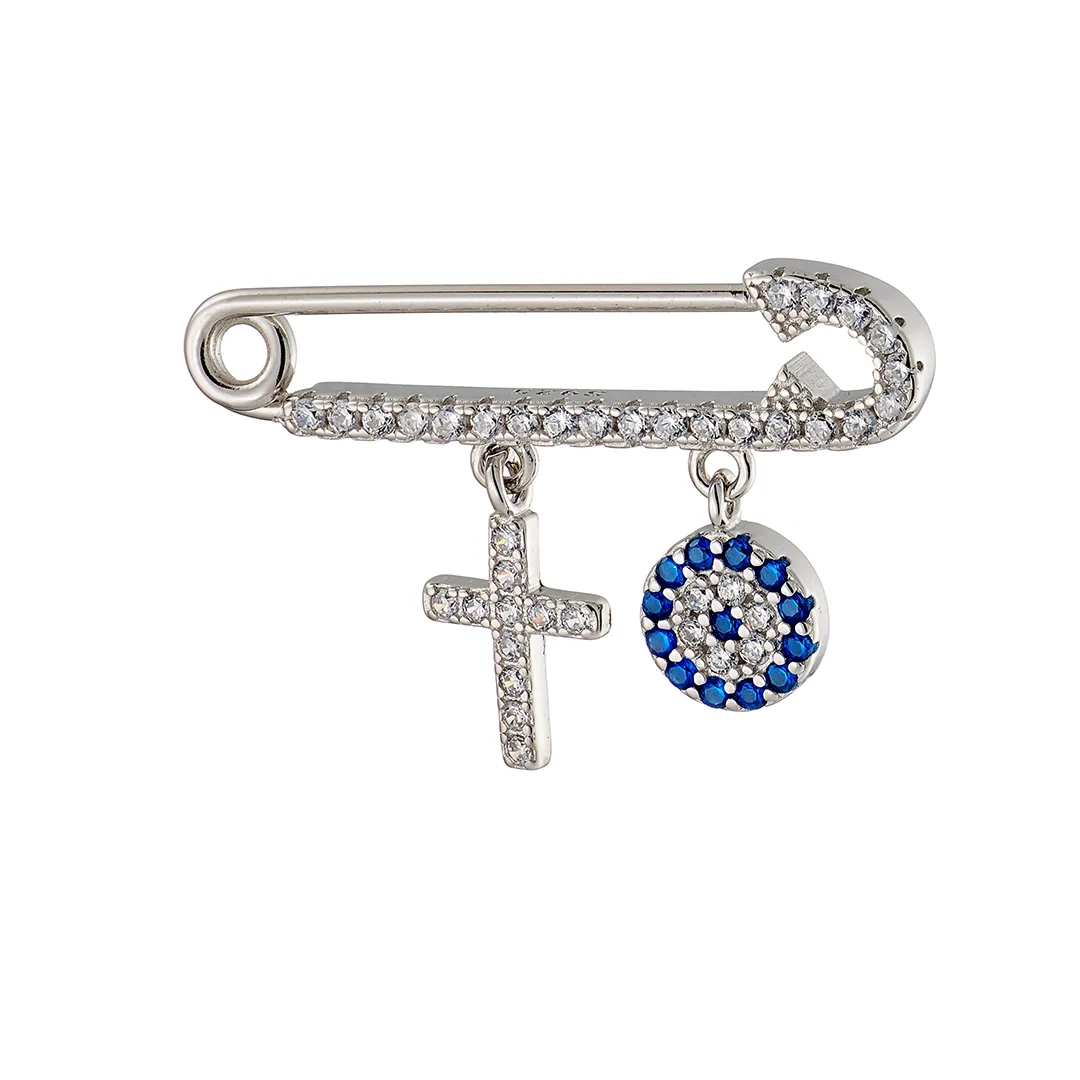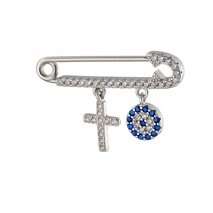 Oxzen ασημένια παιδική παραμάνα επιπλατινωμένη με ματάκι και σταυρό