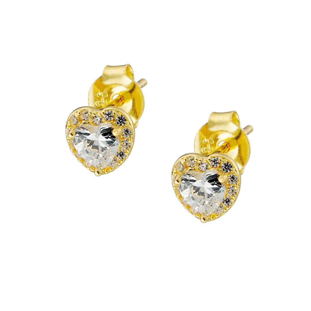 Oxzen ασημένια σκουλαρίκια καρφωτά καρδιά με λευκά ζιργκόν