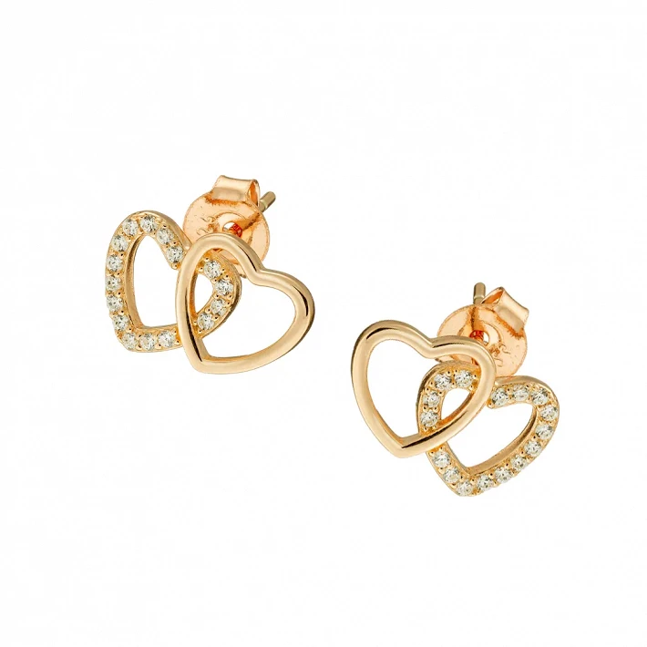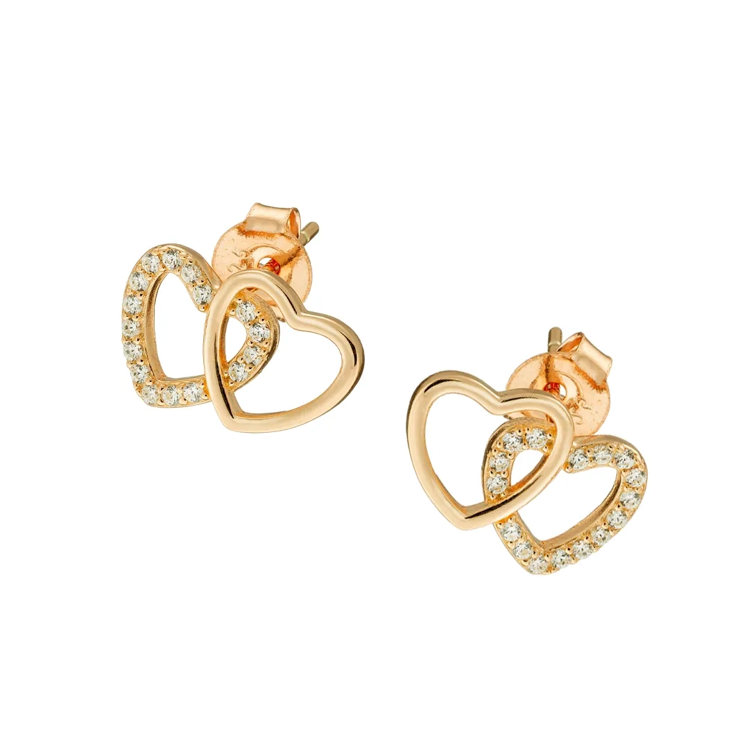 Oxzen ασημένια σκουλαρίκια καρφωτά με διπλή καρδιά και λευκά ζιργκόν