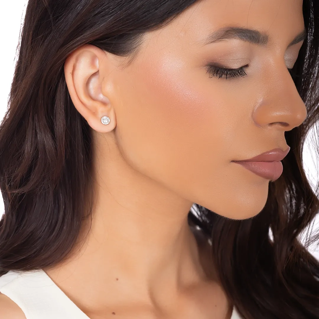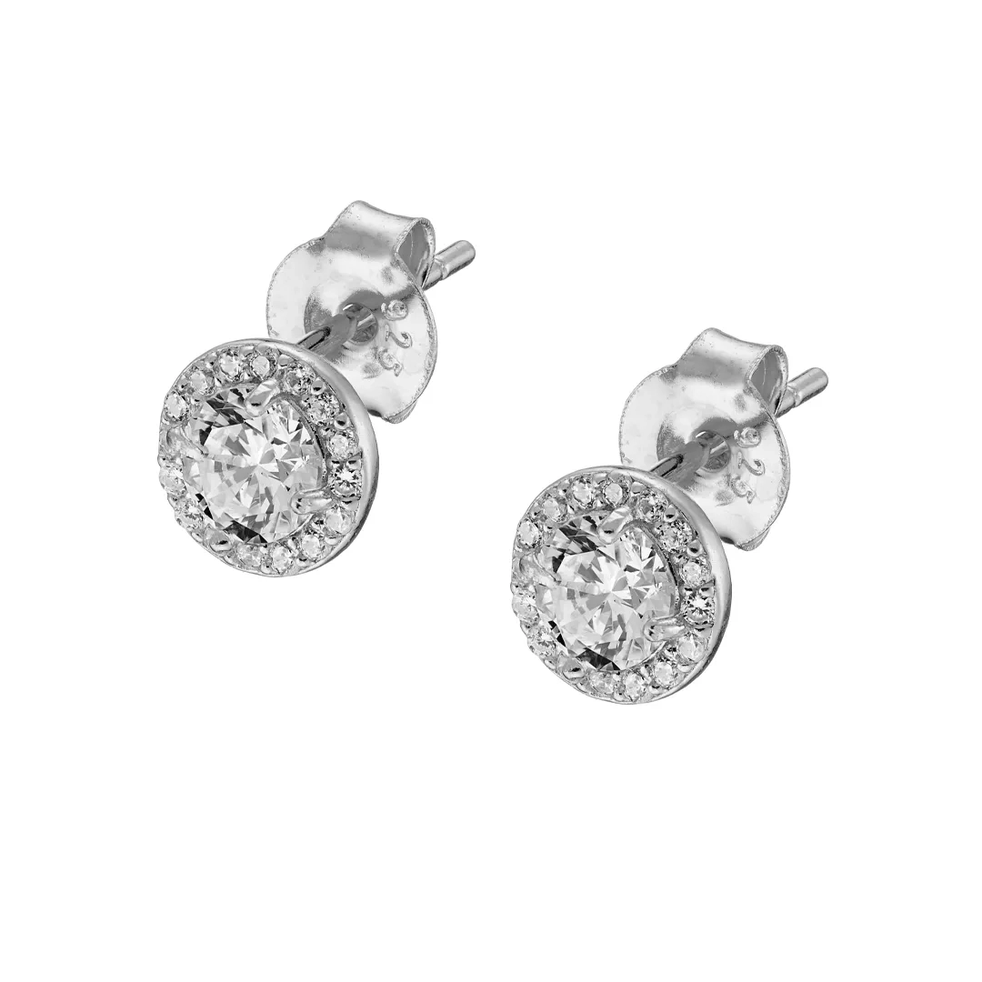Oxzen ασημένια σκουλαρίκια καρφωτά με λευκά ζιργκόν