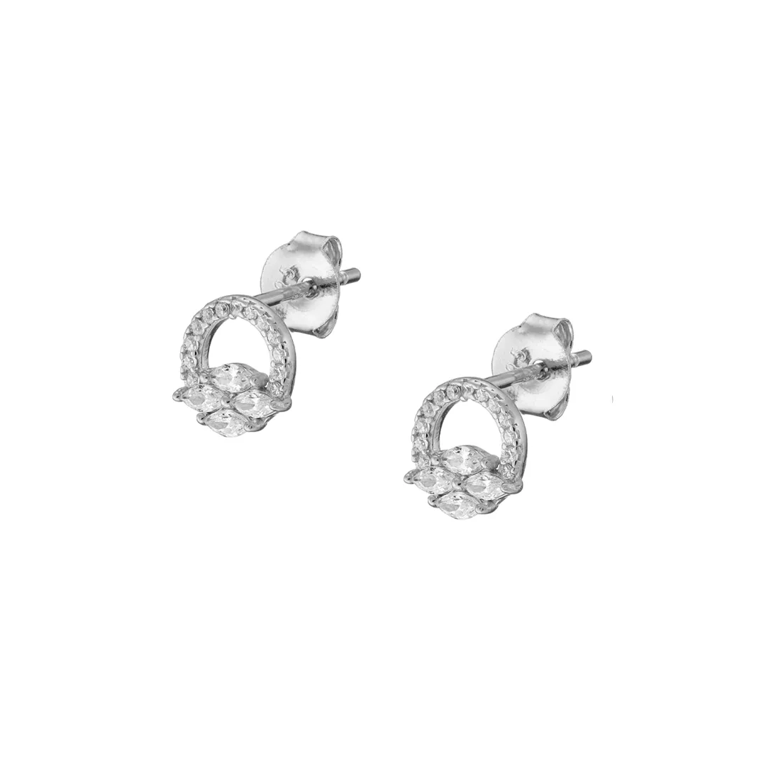 Oxzen ασημένια σκουλαρίκια καρφωτά με λευκά ζιργκόν