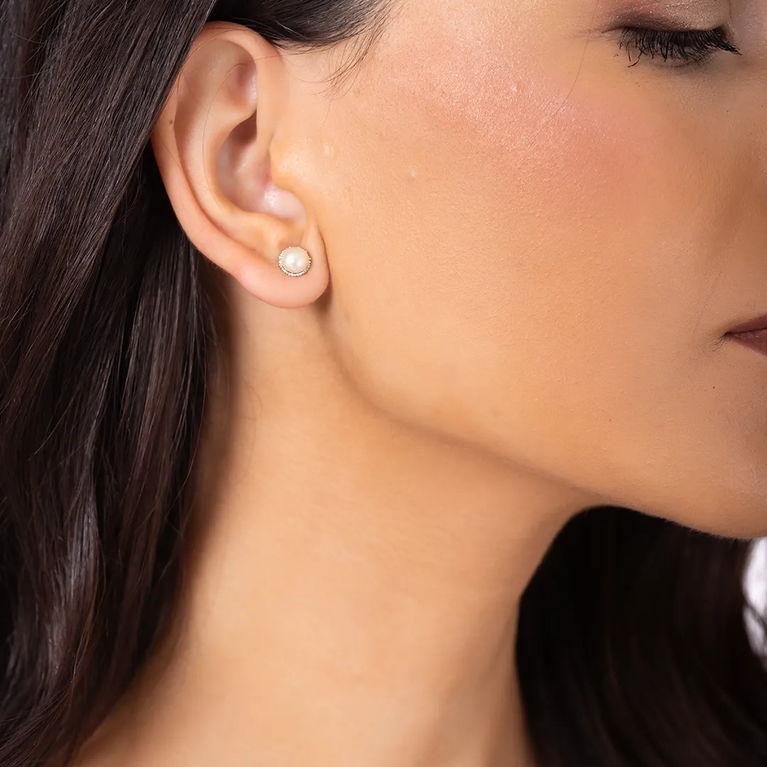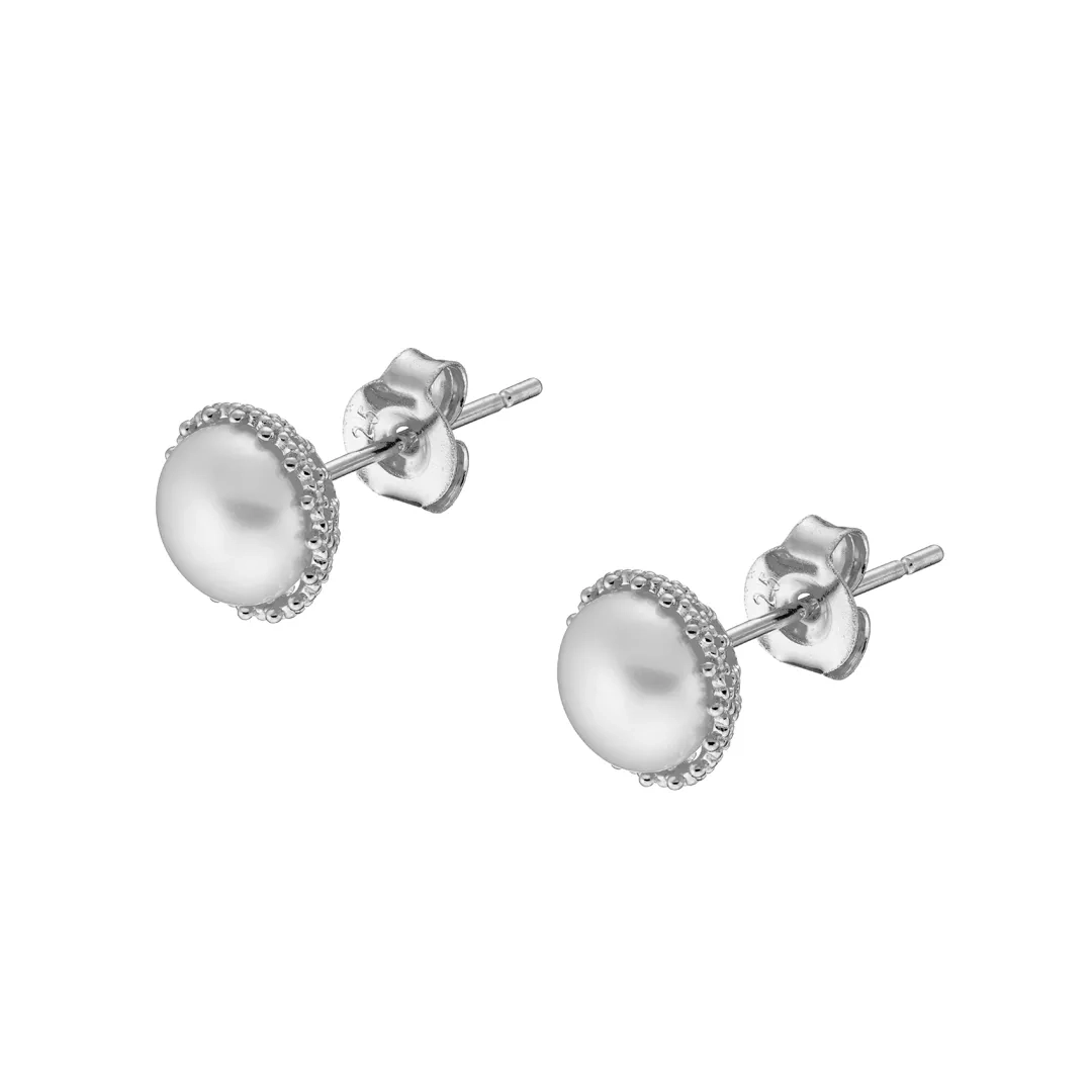 Oxzen ασημένια σκουλαρίκια καρφωτά με πέρλα
