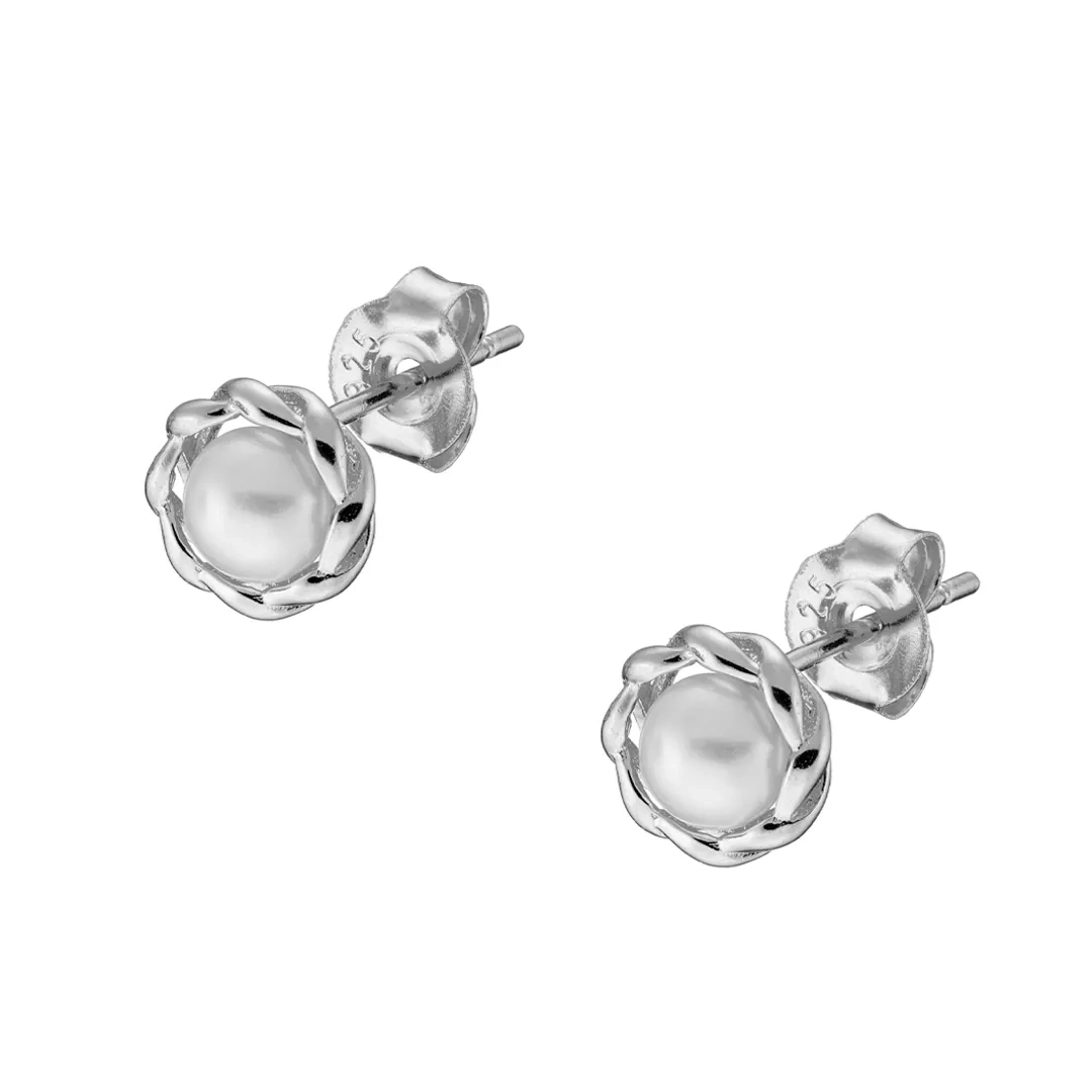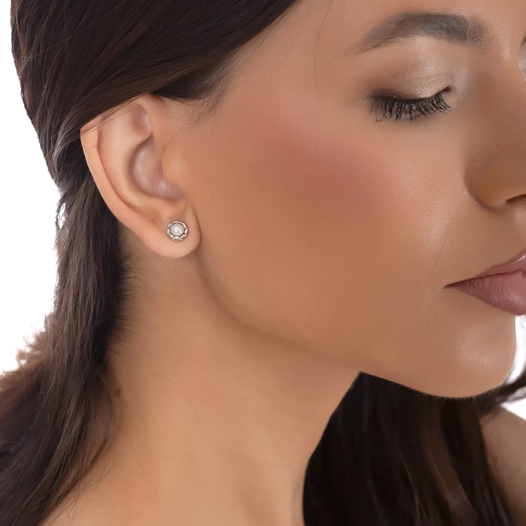 Oxzen ασημένια σκουλαρίκια καρφωτά με πέρλα