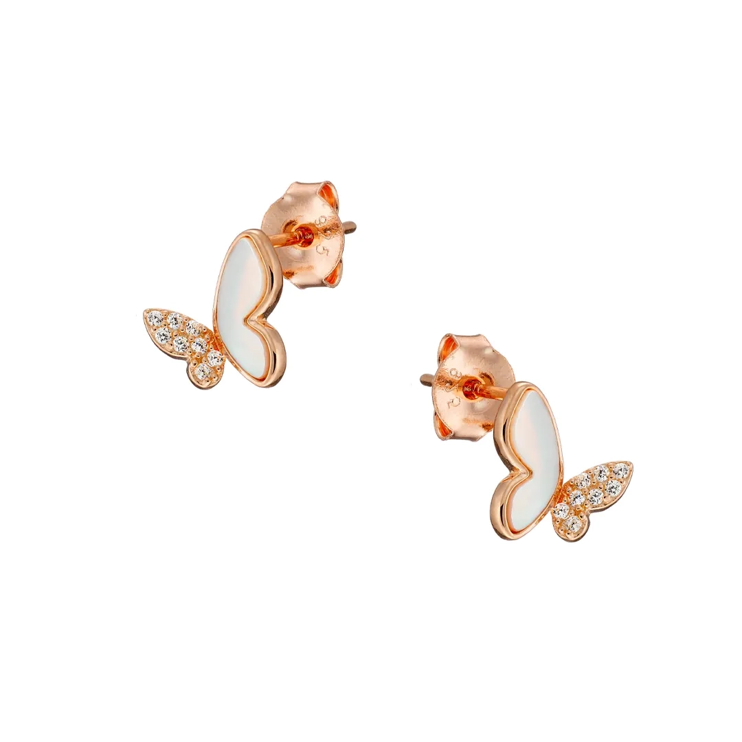 Oxzen ασημένια σκουλαρίκια καρφωτά πεταλούδα με φίλντισι