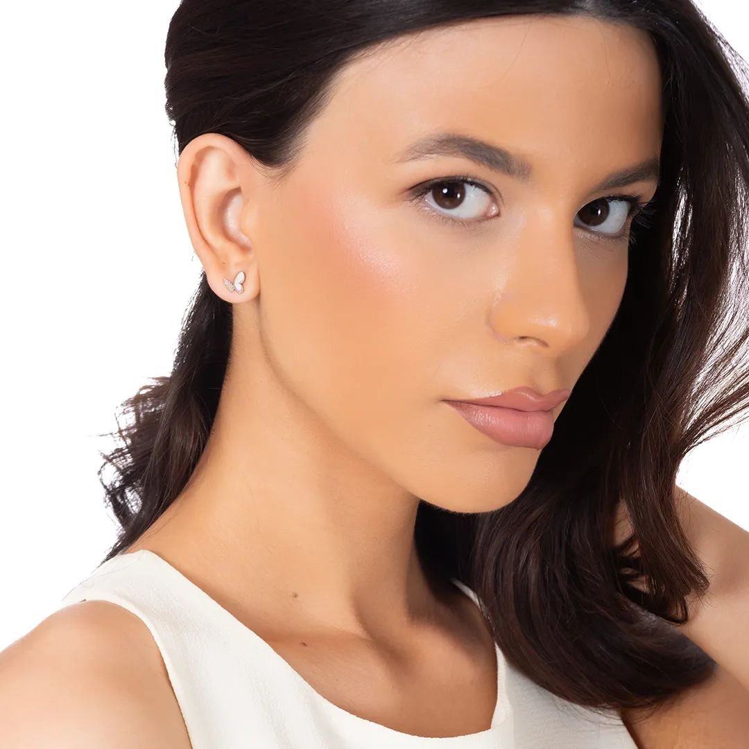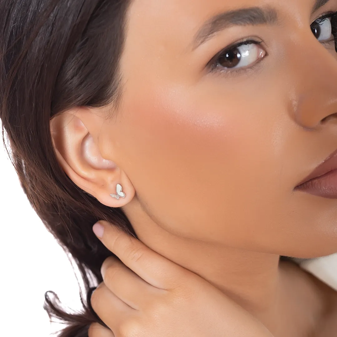 Oxzen ασημένια σκουλαρίκια καρφωτά πεταλούδα με φίλντισι