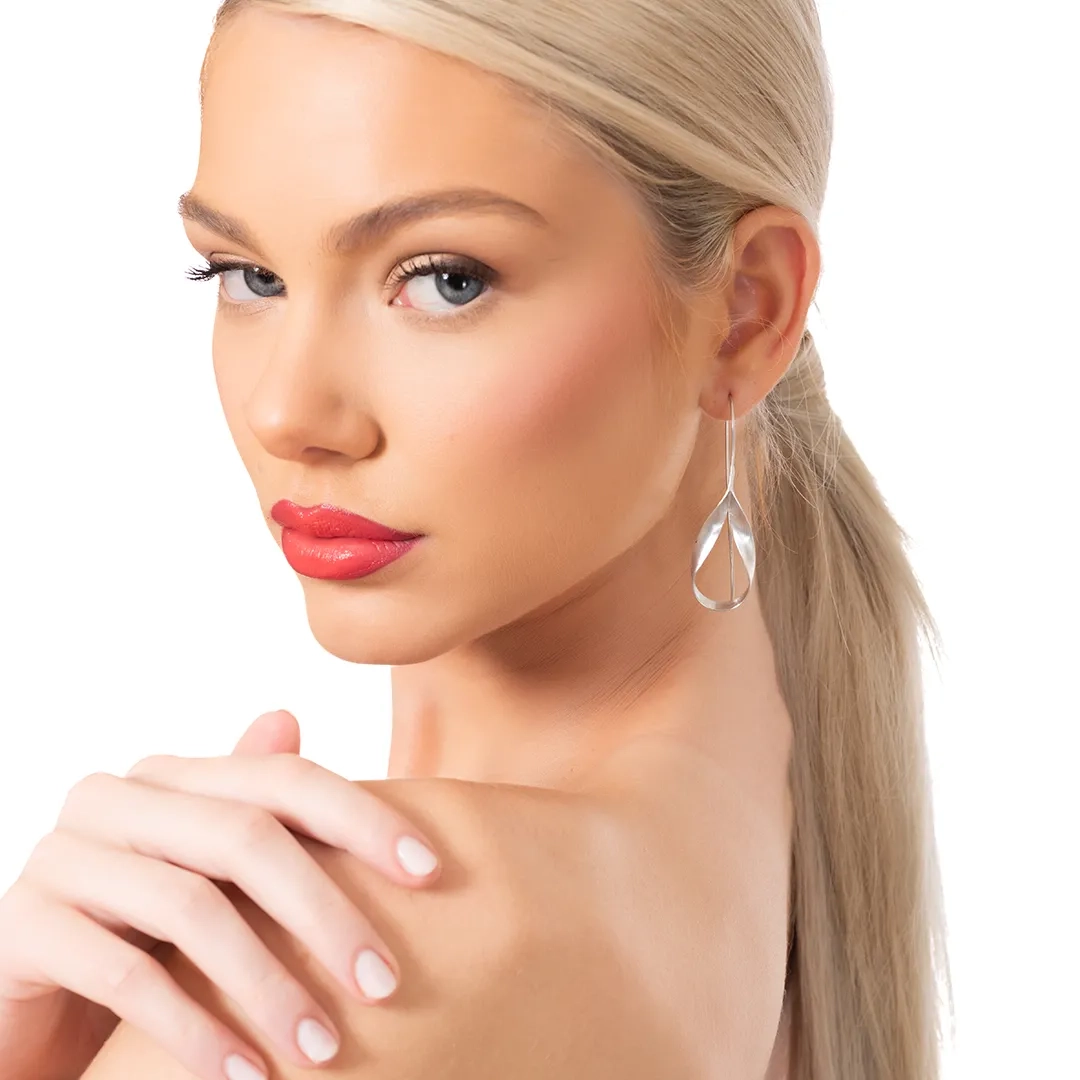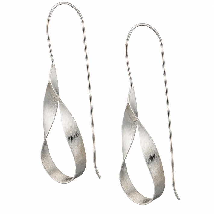 Oxzen ασημένια σκουλαρίκια μακριά ματ με ιδιαίτερο σχήμα