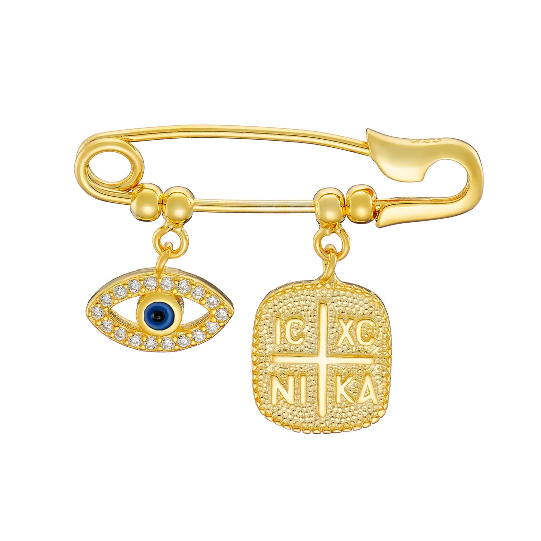 Oxzen ασημένια βρεφική παραμάνα με ματάκι και Κωνσταντινάτο
