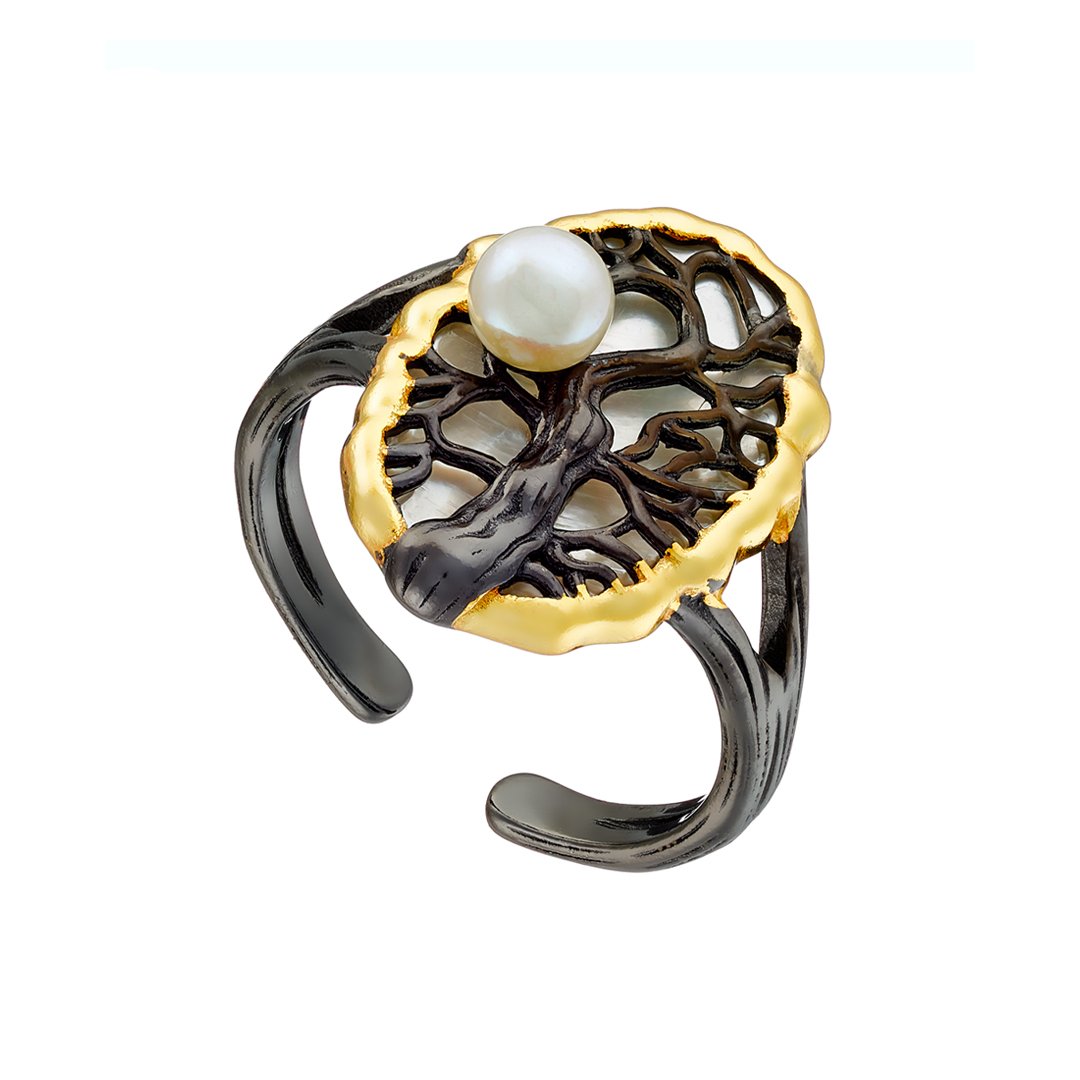 Oxzen ασημένιο δαχτυλίδι χειροποίητο με πέρλα free size