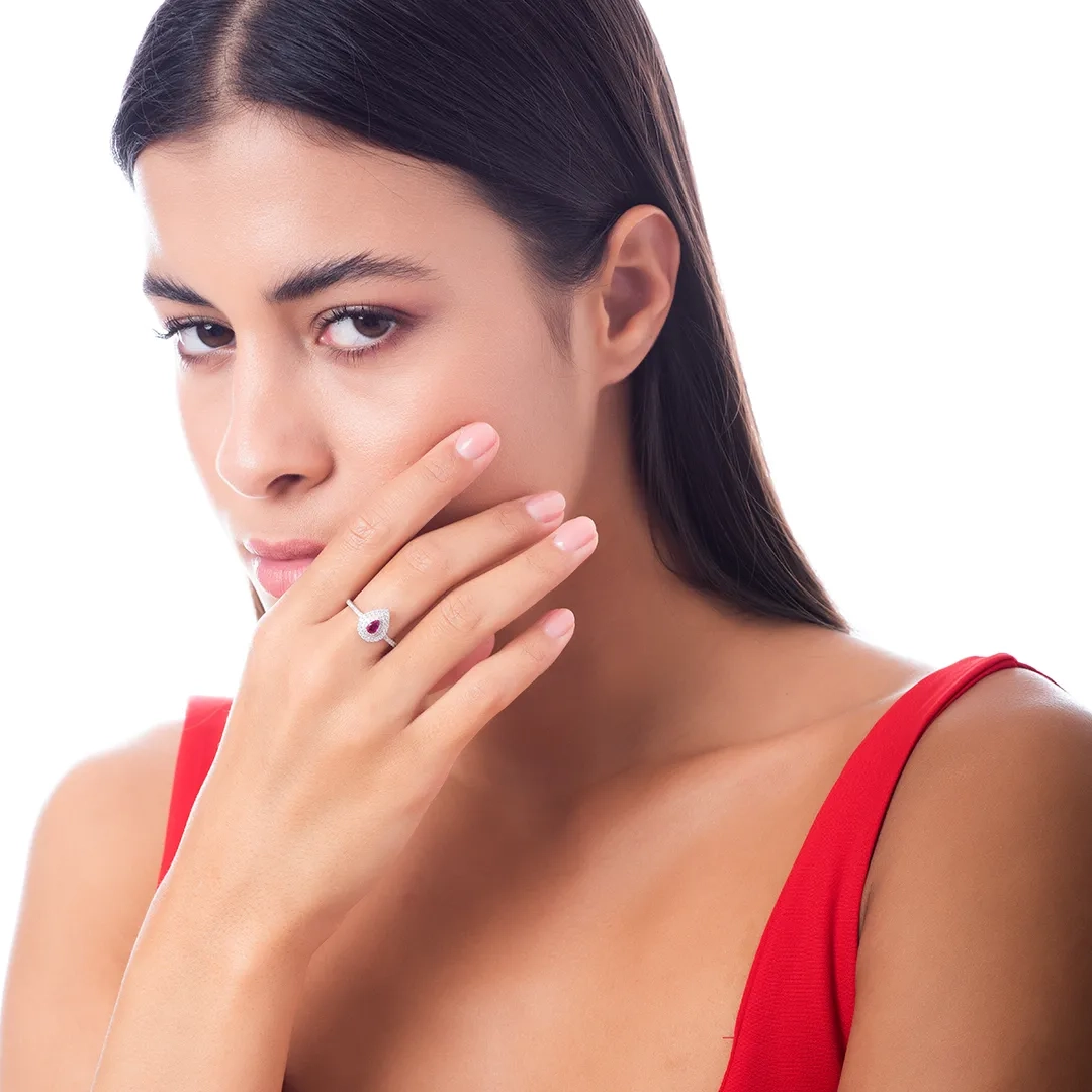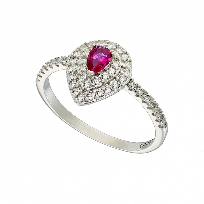 Oxzen ασημένιο δαχτυλίδι δάκρυ με πέτρες ζιργκόν