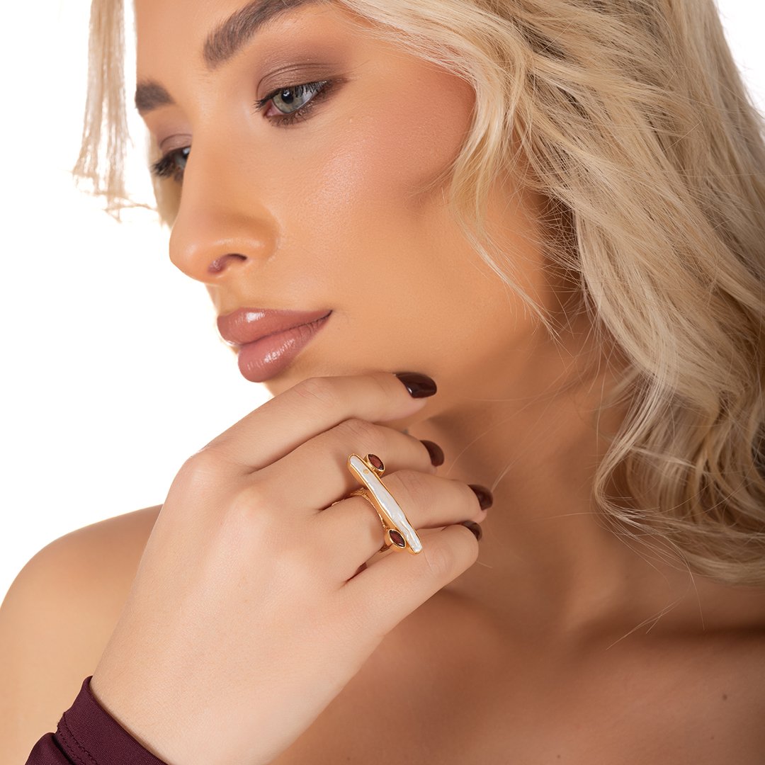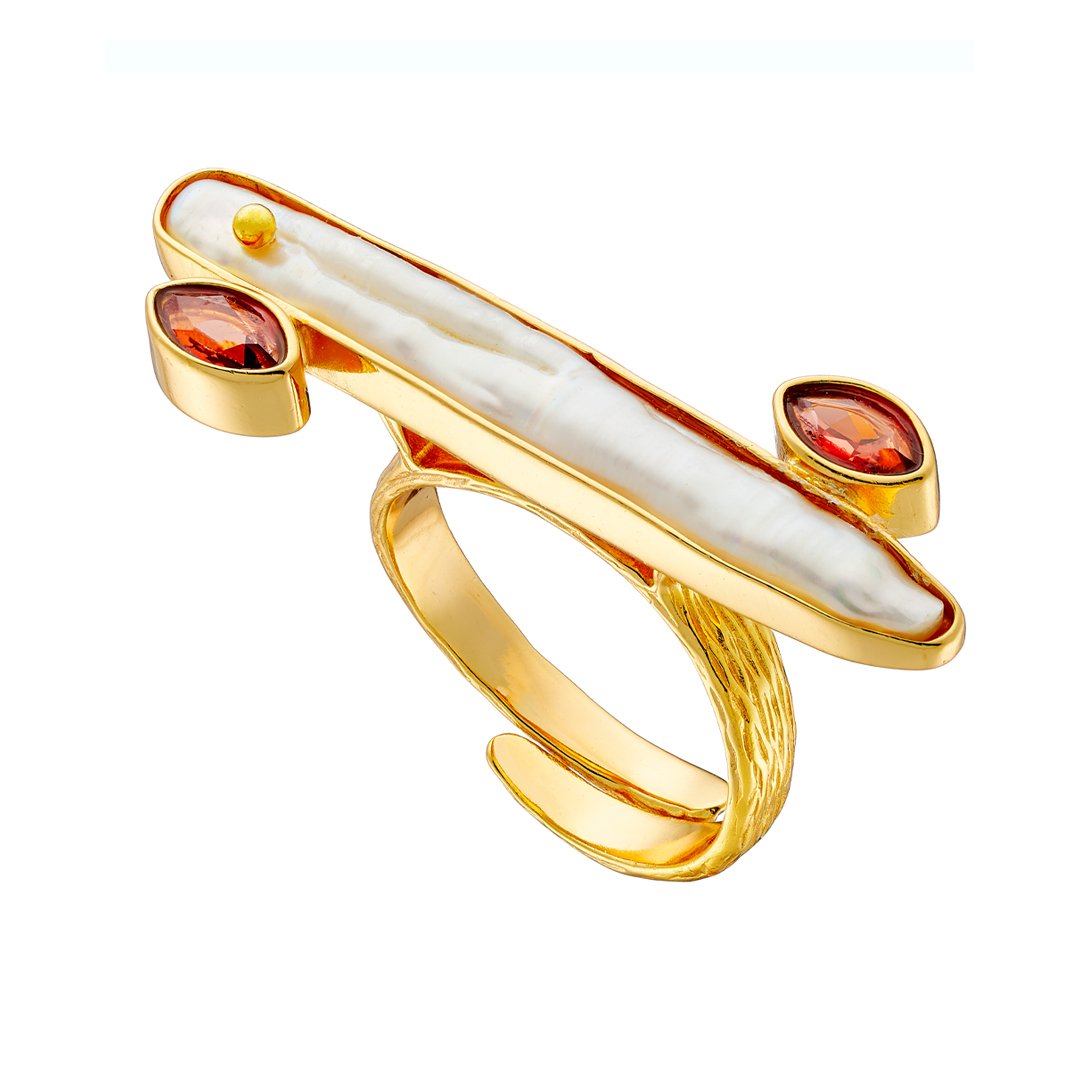 Oxzen ασημένιο δαχτυλίδι επιχρυσωμένο χειροποίητο με πέρλα ακανόνιστη free size
