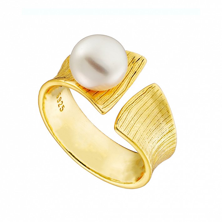 Oxzen ασημένιο δαχτυλίδι επιχρυσωμένο χειροποίητο με πέρλα free size