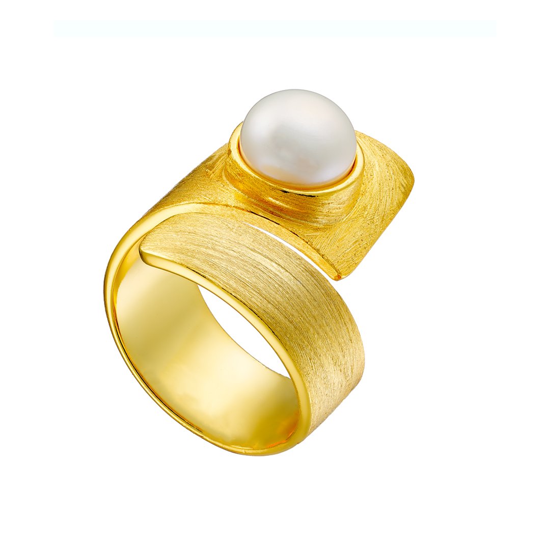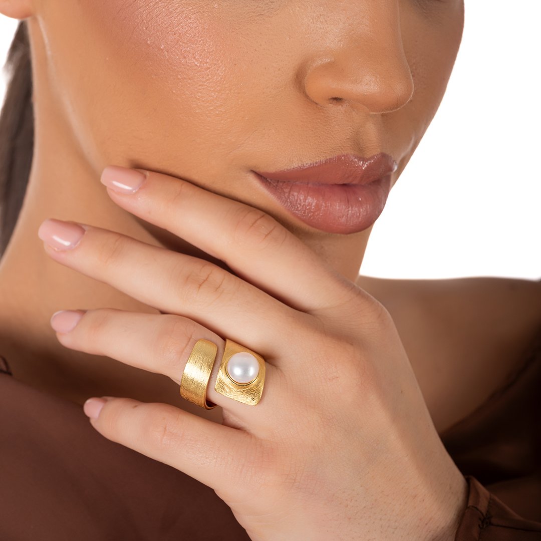 Oxzen ασημένιο δαχτυλίδι επιχρυσωμένο χειροποίητο με πέρλα free size
