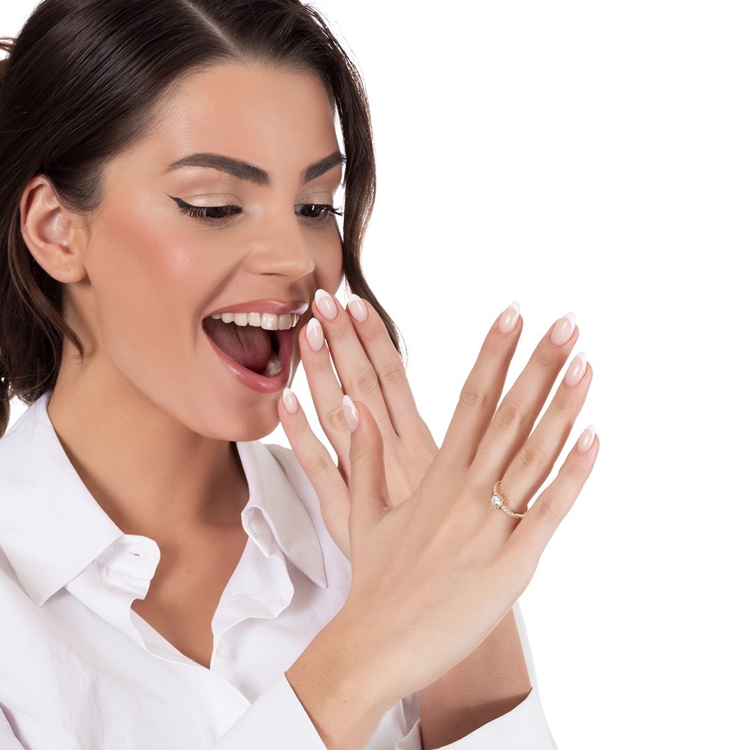 Oxzen ασημένιο δαχτυλίδι επιχρυσωμένο μονόπετρο με λευκό ζιργκόν 6mm