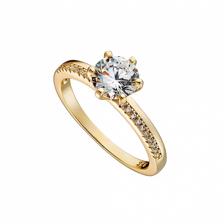 Oxzen ασημένιο δαχτυλίδι επιχρυσωμένο μονόπετρο με λευκό ζιργκόν 7mm