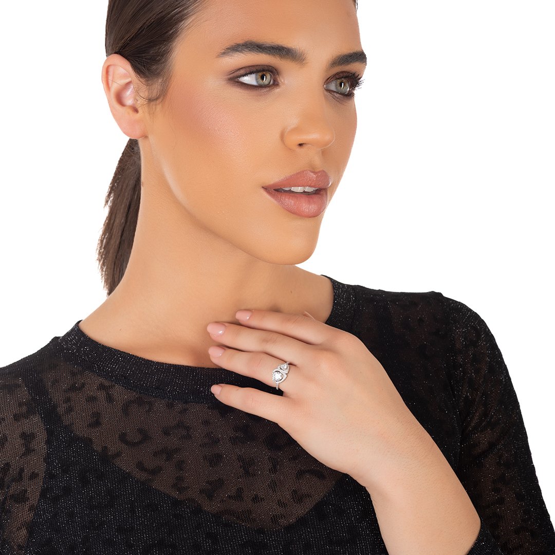 Oxzen ασημένιο δαχτυλίδι με διπλή καρδιά ζιργκόν