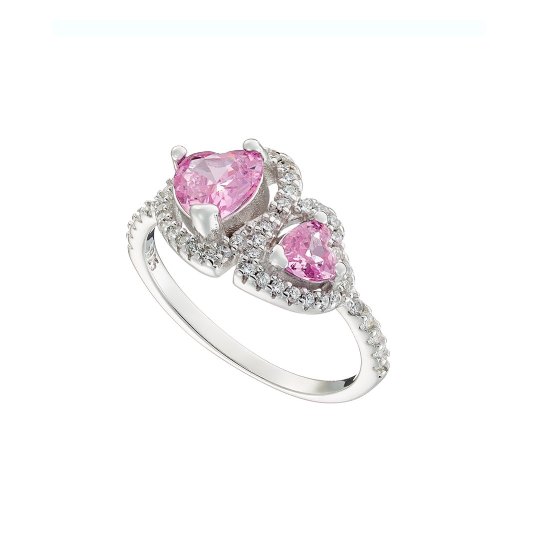 Oxzen ασημένιο δαχτυλίδι με διπλή καρδιά ζιργκόν