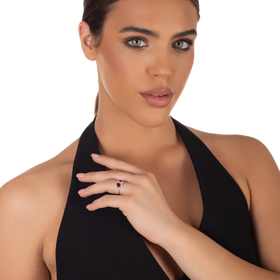 Oxzen ασημένιο δαχτυλίδι με διπλή καρδιά ζιργκόν