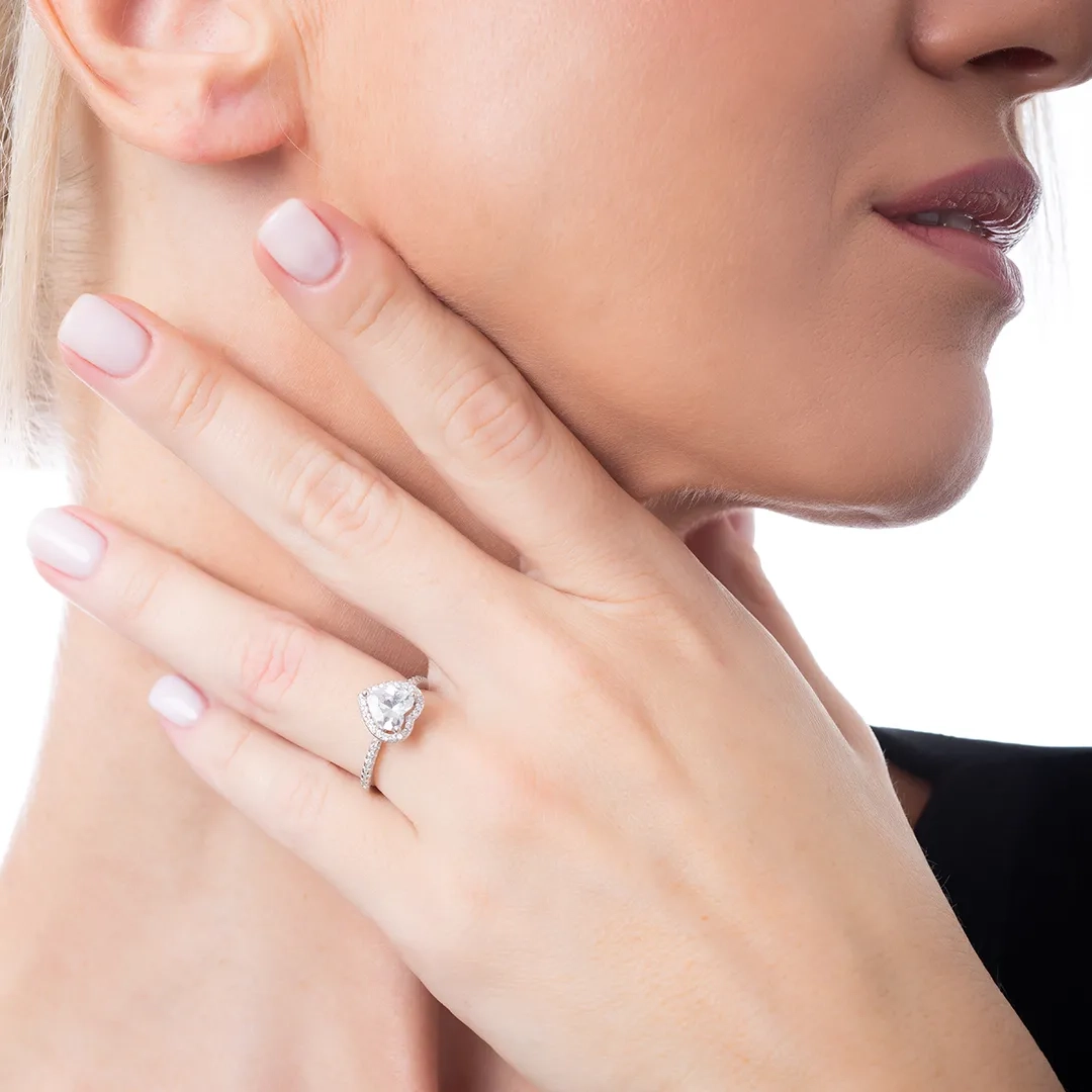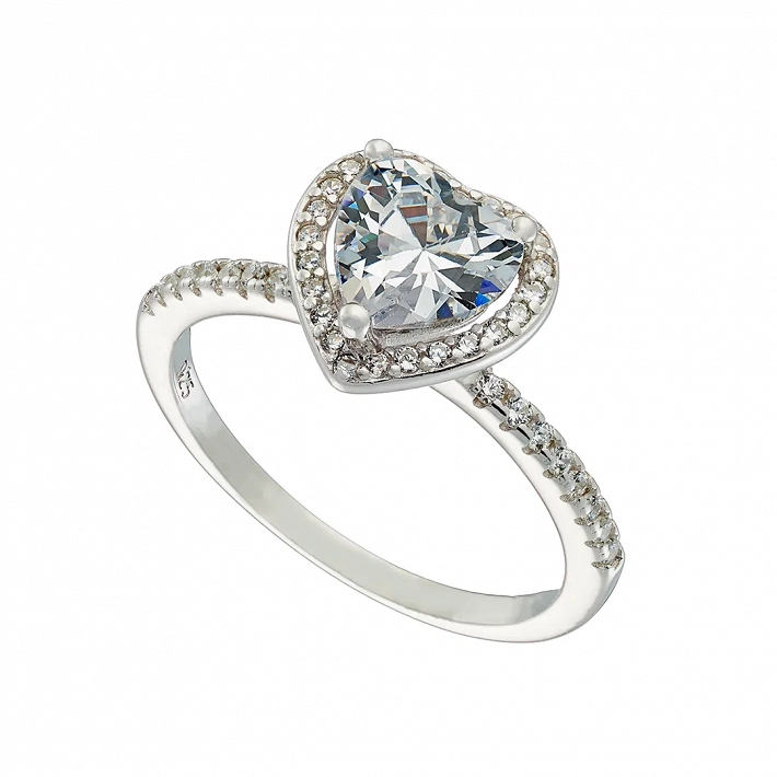 Oxzen ασημένιο δαχτυλίδι με καρδιά ζιργκόν