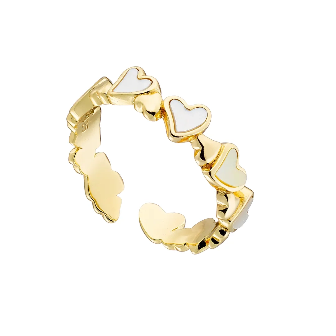 Oxzen ασημένιο δαχτυλίδι με καρδιές φίλντισι free size
