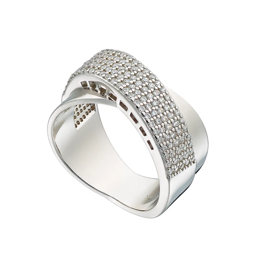 Oxzen ασημένιο δαχτυλίδι με λευκά ζιργκόν