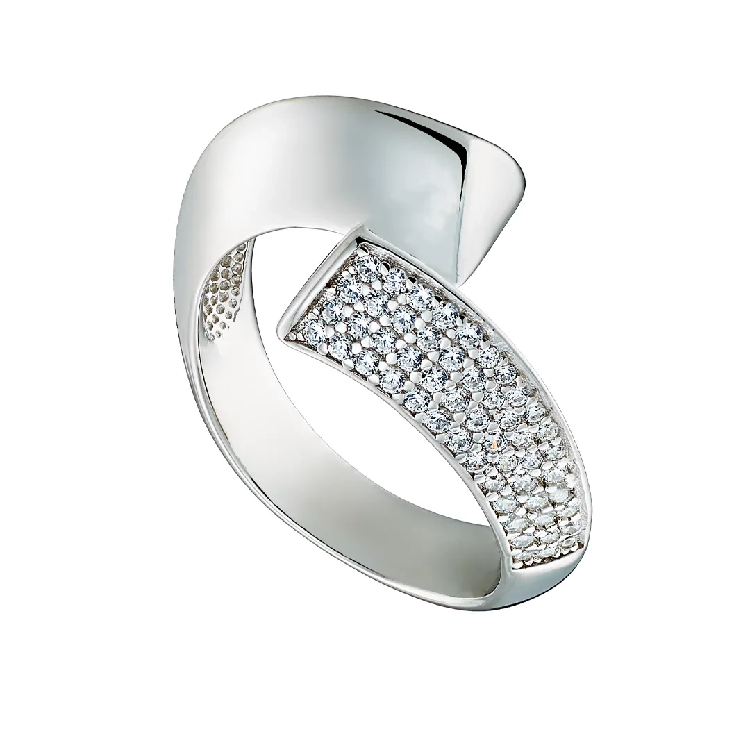 Oxzen ασημένιο δαχτυλίδι με λευκά ζιργκόν