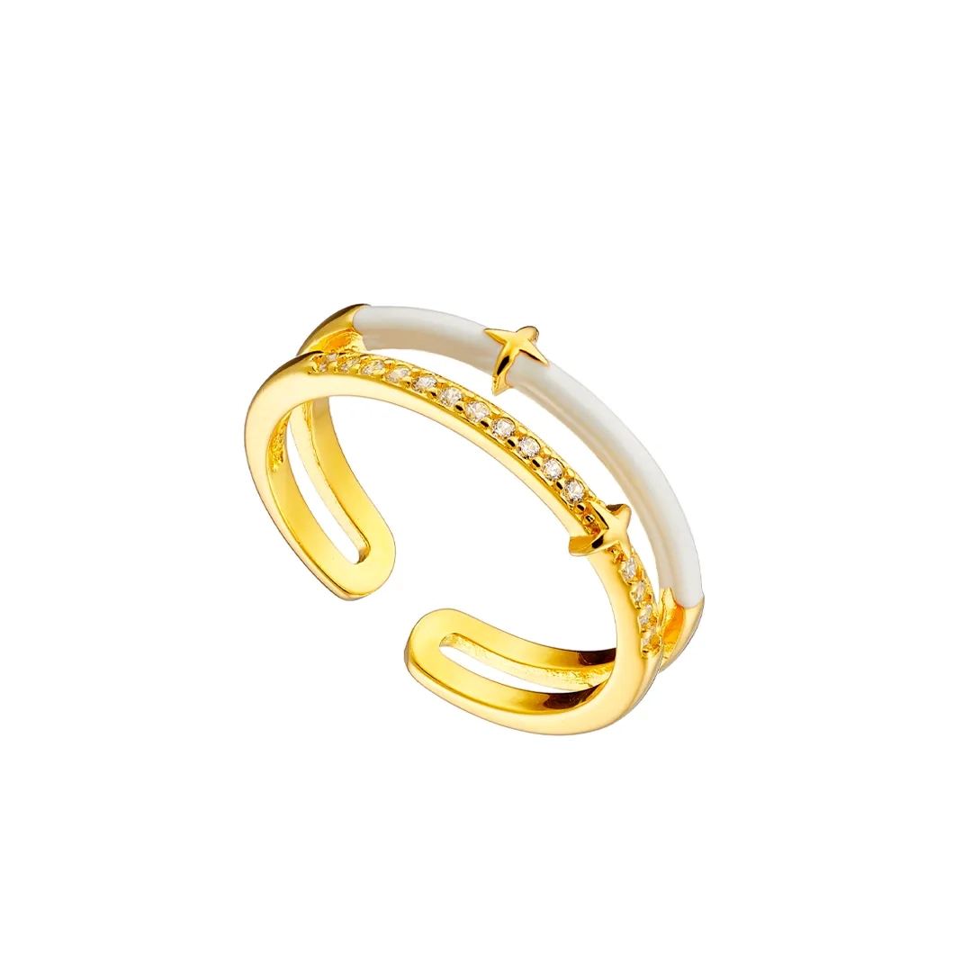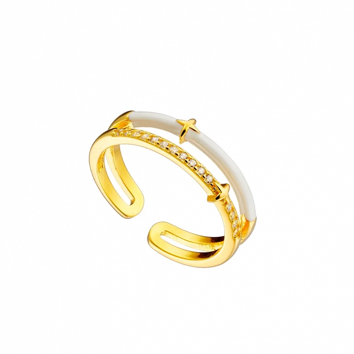 Oxzen ασημένιο δαχτυλίδι με λευκό σμάλτο free size