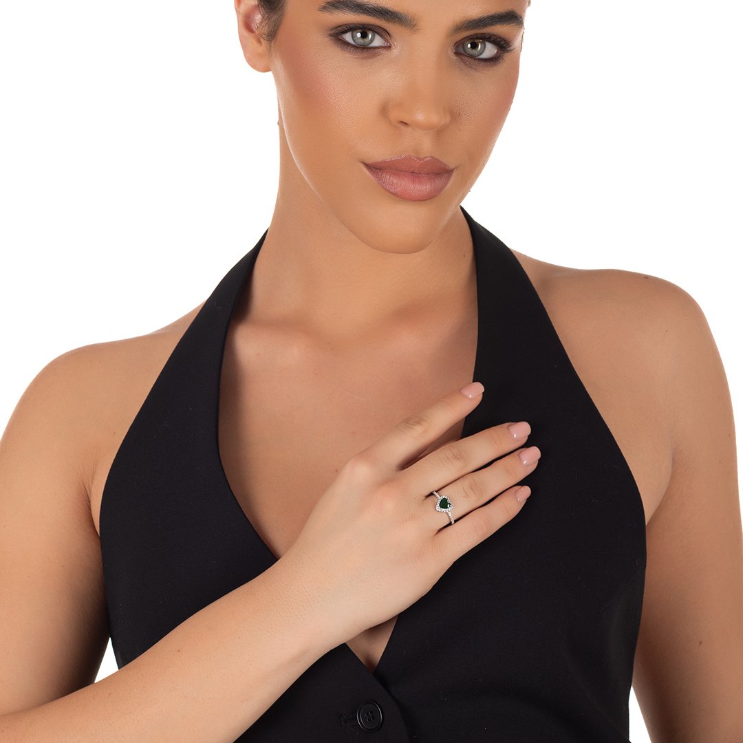 Oxzen ασημένιο δαχτυλίδι μονόπετρο με καρδιά ζιργκόν