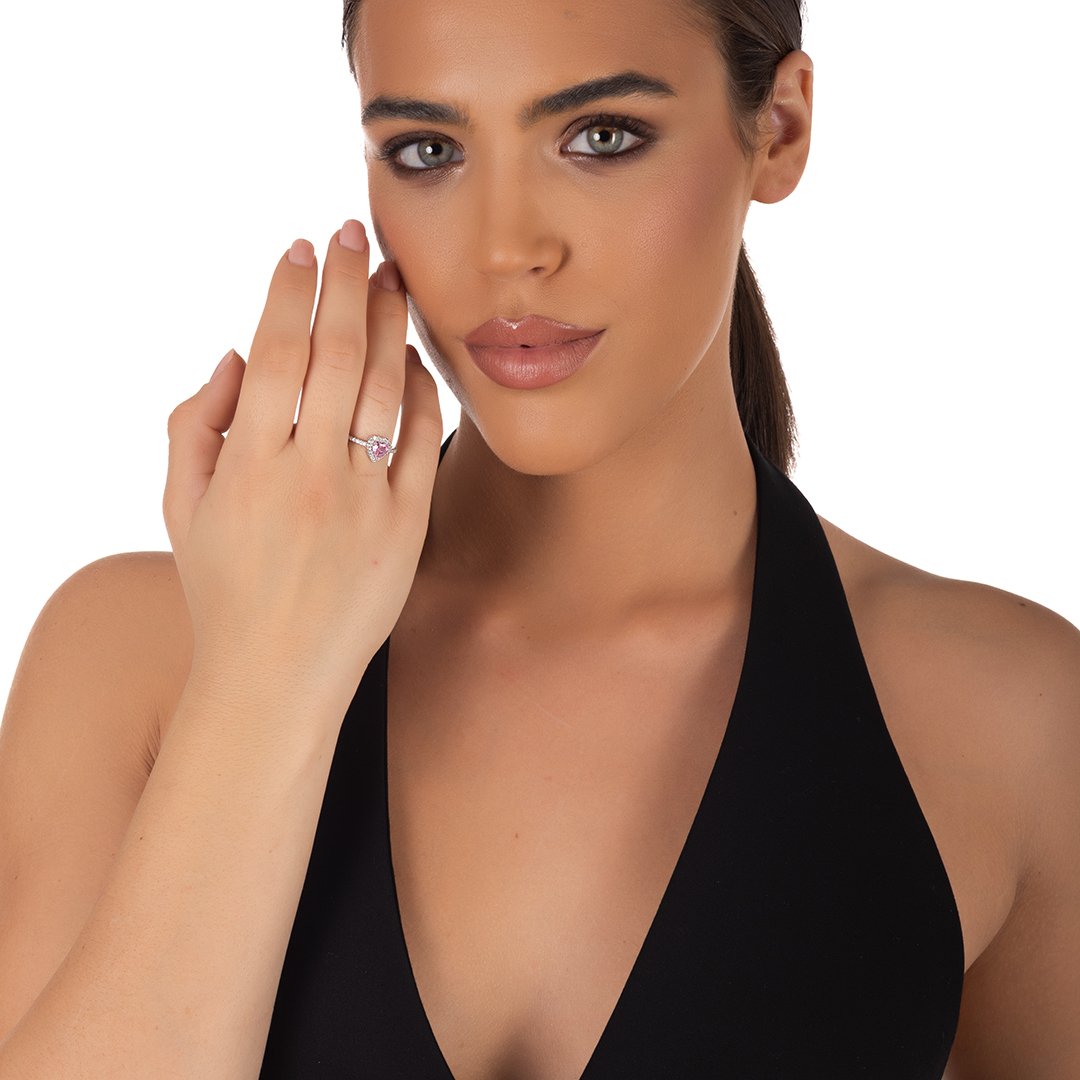 Oxzen ασημένιο δαχτυλίδι μονόπετρο με καρδιά ζιργκόν