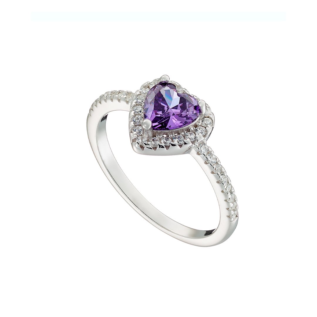 Oxzen ασημένιο δαχτυλίδι μονόπετρο με καρδιά ζιργκόν