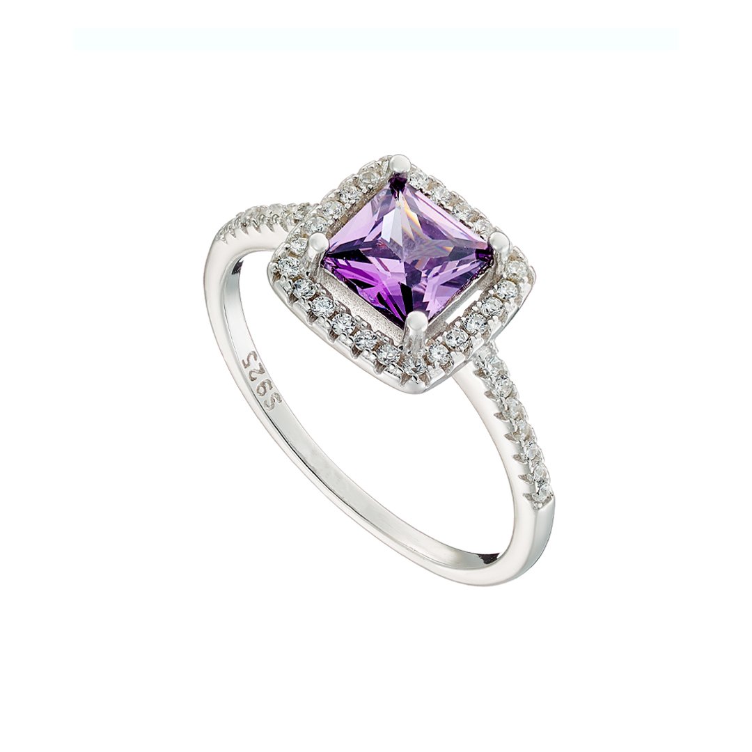 Oxzen ασημένιο δαχτυλίδι μονόπετρο τετράγωνο με ζιργκόν