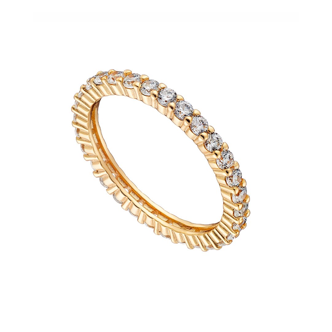 Oxzen ασημένιο δαχτυλίδι ολόσειρο με λευκά ζιργκόν