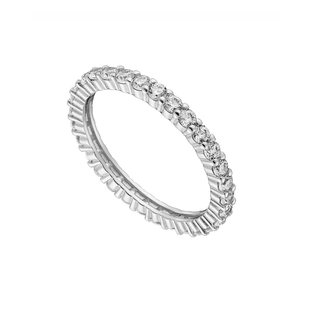 Oxzen ασημένιο δαχτυλίδι ολόσειρο με λευκά ζιργκόν