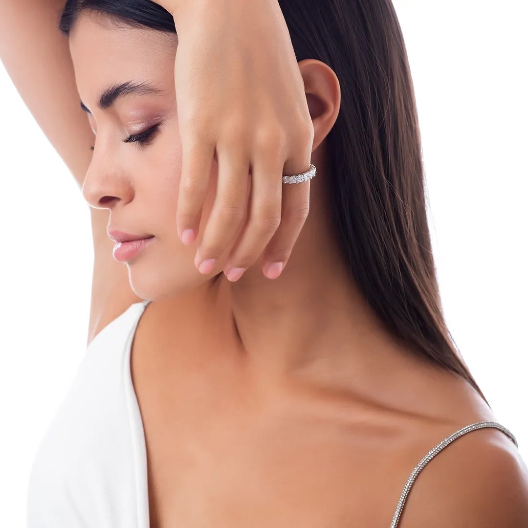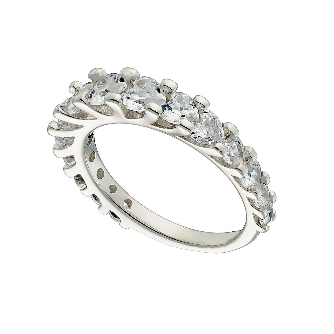 Oxzen ασημένιο δαχτυλίδι σειρέ με λευκά ζιργκόν