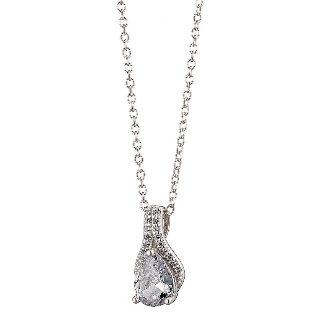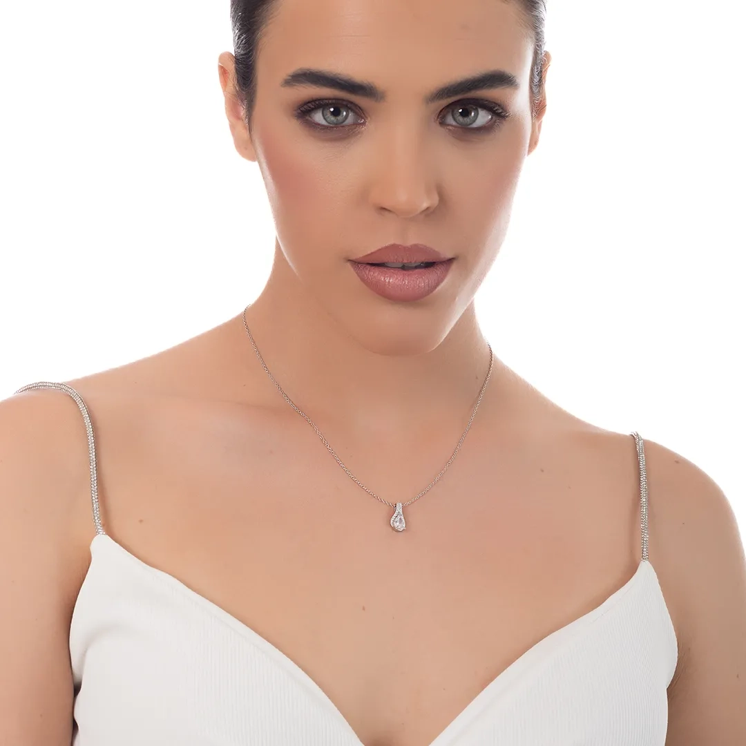 Oxzen ασημένιο κολιέ δάκρυ με λευκά ζιργκόν