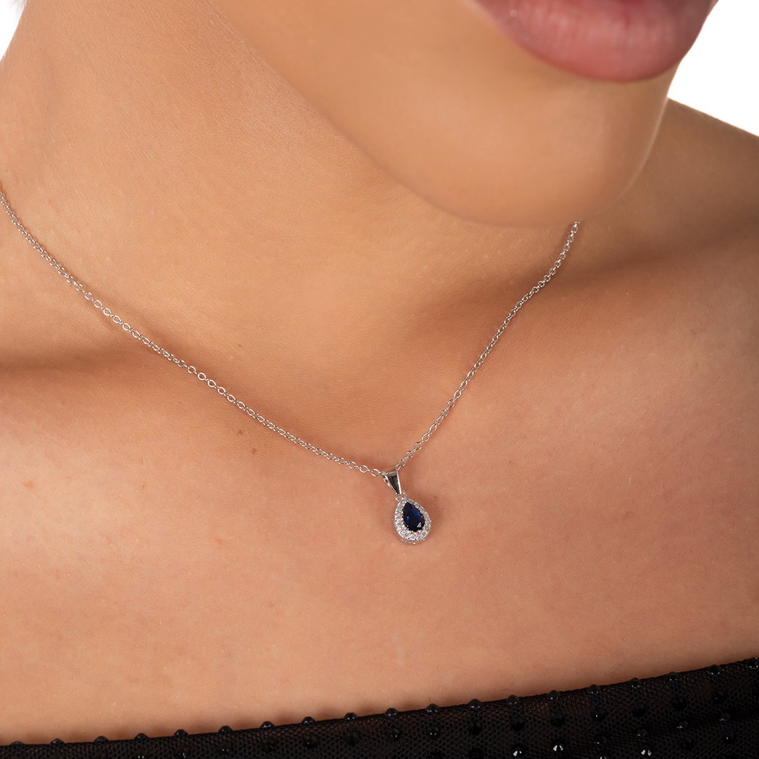 Oxzen ασημένιο κολιέ δάκρυ με ζιργκόν