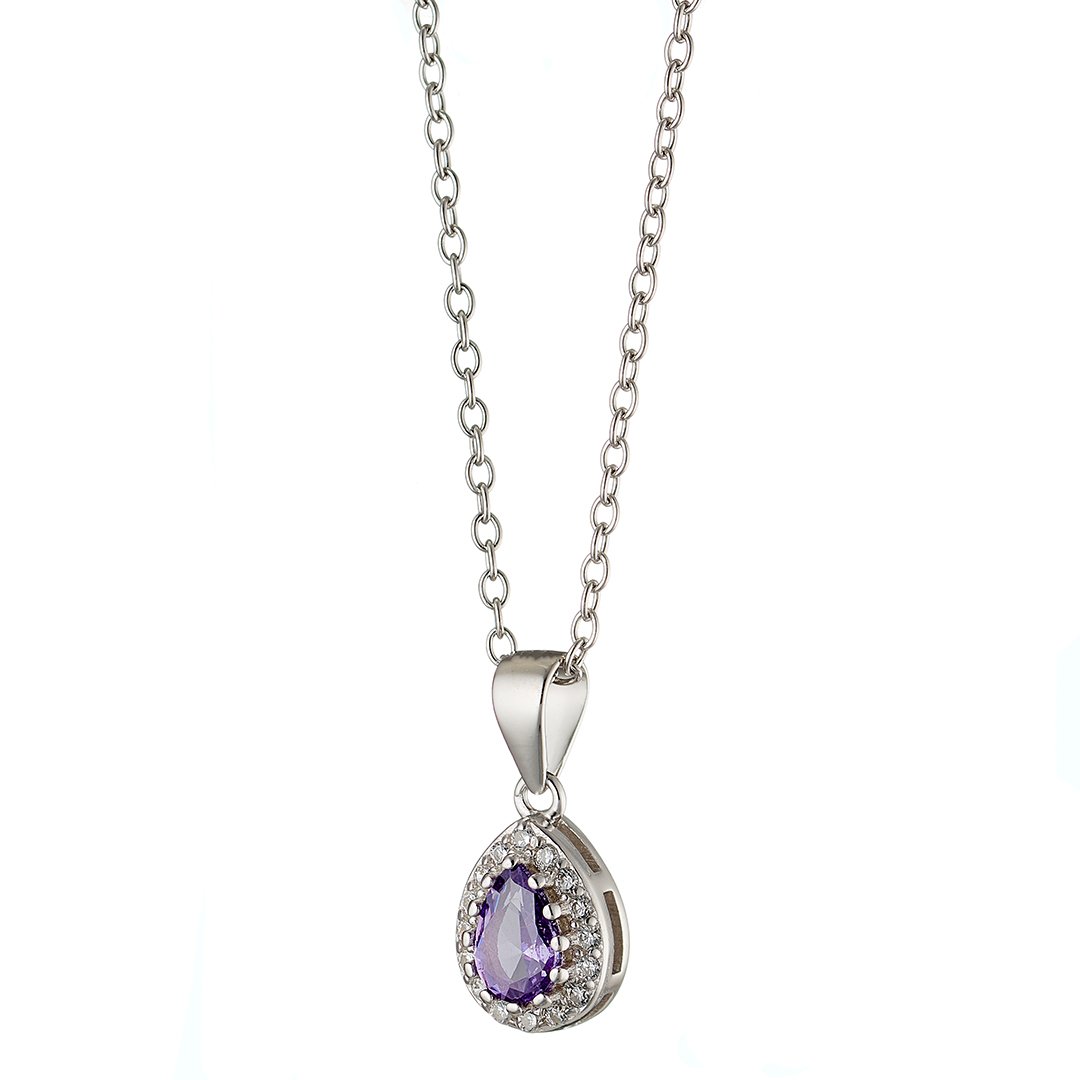 Oxzen ασημένιο κολιέ δάκρυ με ζιργκόν