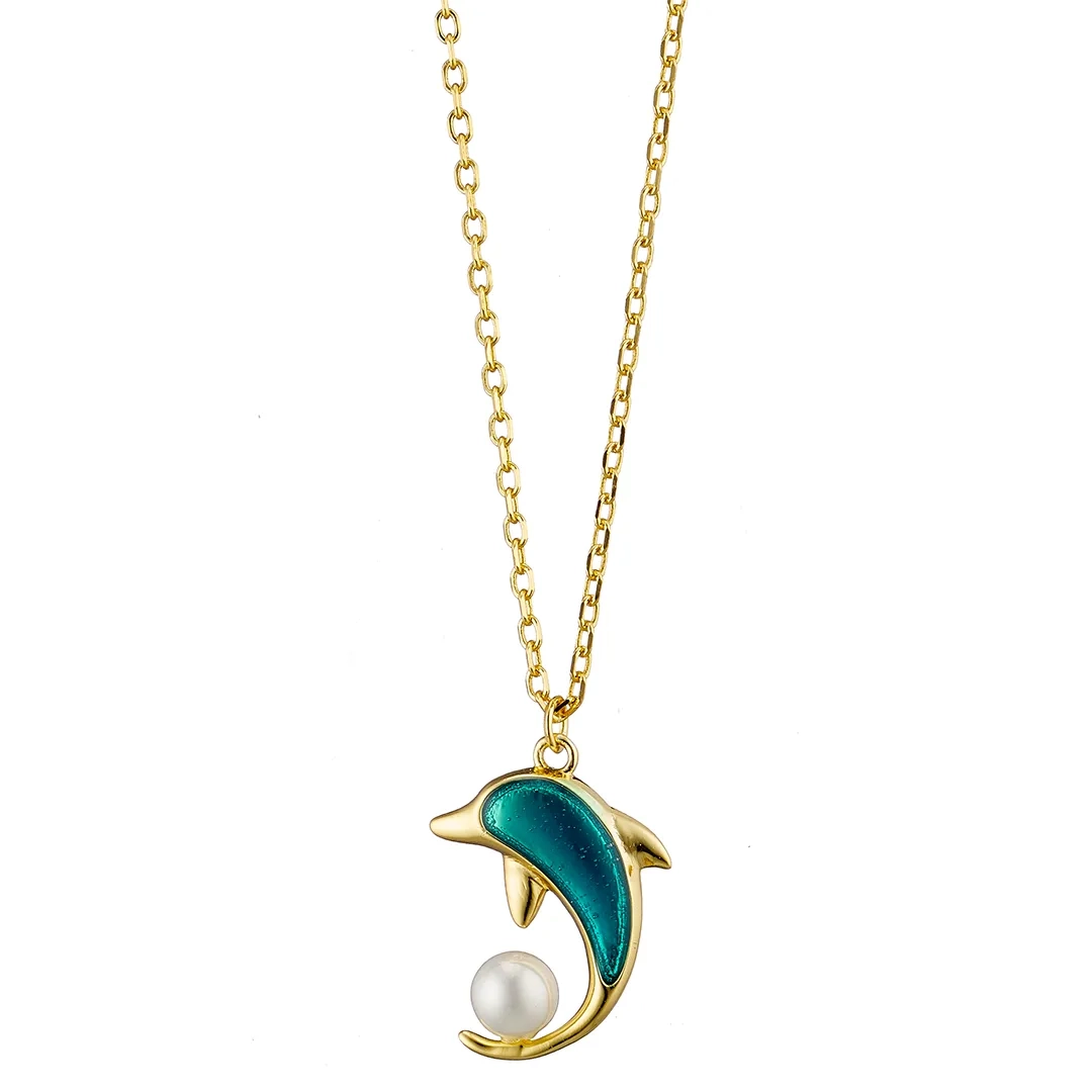 Oxzen ασημένιο κολιέ δελφινάκι με μπλέ σμάλτο και πέρλα
