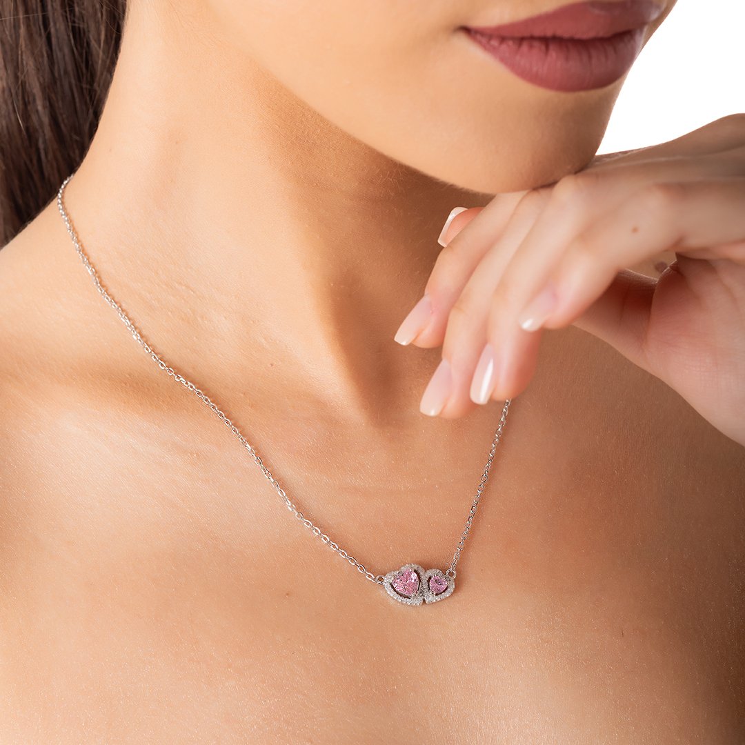 Oxzen ασημένιο κολιέ διπλή καρδια με ζιργκόν