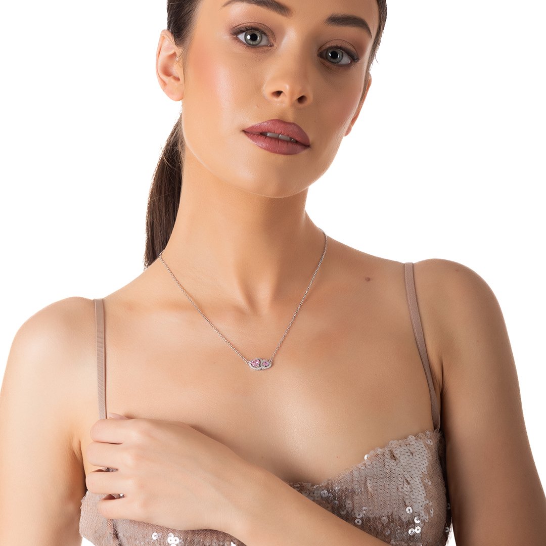 Oxzen  ασημένιο κολιέ διπλή καρδια με ζιργκόν